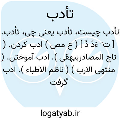 تأدب. [ ت َ ءَدْ دُ ] ( ع مص ) ادب کردن. ( تاج المصادربیهقی ). ادب آموختن. ( منتهی الارب ) ( ناظم الاطباء ). ادب گرفتن. ( زوزنی ) ( ناظم الاطباء ). ادب یافتن. ( آنندراج ) ( فرهنگ نظام ): و چون ایام رضاع به آخررسید در مشقت تعلم و تأدب افتد. ( کلیله و دمنه ).