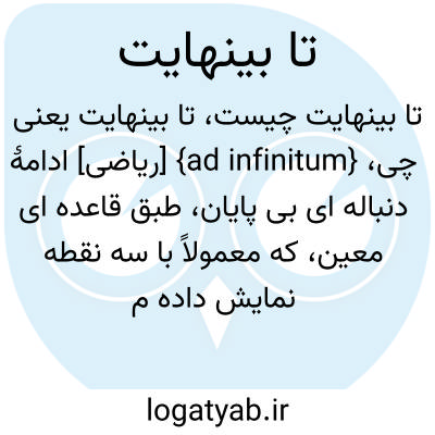 {ad infinitum} [ریاضی] ادامۀ دنباله ای بی پایان، طبق قاعده ای معین، که معمولاً با سه نقطه نمایش داده می شود