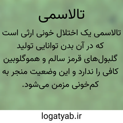 تالاسمی یک اختلال خونی ارثی است که در آن بدن توانایی تولید گلبولهای قرمز سالم و هموگلوبین کافی را ندارد و این وضعیت منجر به کمخونی مزمن میشود. این بیماری به دلیل نقص ژنتیکی در ساخت زنجیرههای هموگلوبین ایجاد میشود و معمولاً از والدین به فرزندان منتقل میگردد. این بیماری انواع مختلفی دارد، از جمله تالاسمی مینور (حامل) که معمولاً خفیف است و تالاسمی ماژور که شدیدتر بوده و نیازمند درمان مستمر میباشد. افراد مبتلا به آن ممکن است دچار ضعف، خستگی شدید، زردی پوست، بزرگی طحال و تأخیر در رشد و نمو شوند و کیفیت زندگی آنها تحت تأثیر قرار گیرد. تشخیص تالاسمی معمولاً از طریق آزمایشهای خون، بررسی سطح هموگلوبین و تستهای ژنتیکی انجام میشود تا نوع و شدت بیماری مشخص گردد. درمان این بیماری شامل انتقال خون منظم، استفاده از داروهای دفعکننده آهن و در برخی موارد پیوند مغز استخوان یا سلولهای بنیادی است تا عوارض بیماری کاهش یابد.