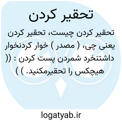( مصدر ) خوار کردنخوار داشتنخرد شمردن پست کردن: (( هیچکس را تحقیرمکنید. ) )