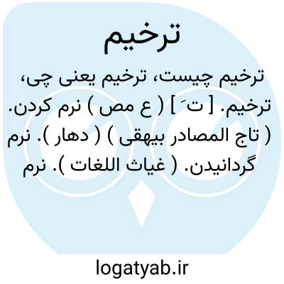۱- ( مصدر ) نرم کردن آواز نرم خواندن. ۲- دم بریدن دنبال. چیزی را قطع کردن. ۳- انداختن حرف یا حروف آخر کلمه.۴- ( صفت ) مرخم: (( بست ) ) ترخیم (( بستن ) ) است. جمع: ترخیمات.