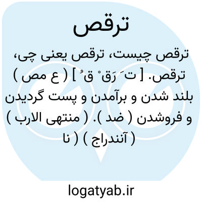 ترقص. [ ت َ رَق ْ ق ُ ] ( ع مص ) بلند شدن و برآمدن و پست گردیدن و فروشدن ( ضد ). ( منتهی الارب ) ( آنندراج ) ( ناظم الاطباء ). بلند شدن و پست گردیدن. ( از اقرب الموارد ). بلند شدن و پست گردیدن بسرعت. ( از المنجد ): اذا ترقصت المفازة غادرت؛ ای ارتفعت و انخفضت و انما یفعل بها ذلک السراب. ( اقرب الموارد ).