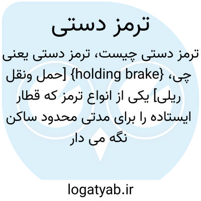 {holding brake} [حمل ونقل ریلی] یکی از انواع ترمز که قطار ایستاده را برای مدتی محدود ساکن نگه می دارد