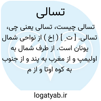 تسالی. [ ت ِ ] ( اِخ ) از نواحی شمال یونان است. از طرف شمال به اولیمپ و از مغرب به پند و از جنوب به کوه اوتا و از مشرق به اوسا و په لیون محدود است. شهرهای اصلی این ناحیه عبارتند از ولو و لاریسا. این سرزمین را تسالیا نیز نامند و در حدود پنجاه هزار تن از سکنه آن مسلمانند ناحیه بسیار آبادان و پرمحصول است و عمده محصولات آنجا زیتون و توتون و غله است. در دشتهای سرسبز این سرزمین پرورش مواشی بسیار رایج است. درسال 1460 م. بتصرف ترکهای عثمانی درآمد و سپس بر طبق قرارداد برلن به دولت یونان واگذار گردید. رجوع به ایران باستان ج 1 ص 667، 704، 747، 752، 753، 767، 768، 769، 774، 000 و ج 2 ص 1190، 1193، 1200، 1222، 1225، 1231، 1247، 1260، 000 و ج 3 ص 1978، 2027، 2032، 2049، 2163 000 و تمدن قدیم فوستل دوکلانژ و فرهنگ ایران باستان ص 236 و 275 و قاموس الاعلام ترکی شود.
