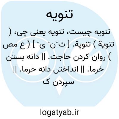 ( تنویة ) تنویة. [ ت َن ْ ی َ ] ( ع مص ) روان کردن حاجت. || دانه بستن خرما. || انداختن دانه خرما. || سپردن کاری بر نیت دیگری. ( منتهی الارب ) ( آنندراج ) ( ناظم الاطباء ) ( از اقرب الموارد ). کسی را نایب اوگذاشتن. ( تاج المصادر بیهقی ). کسی را وا ( به ) نیت او گذاشتن. ( از زوزنی از یادداشت بخط مرحوم دهخدا ).