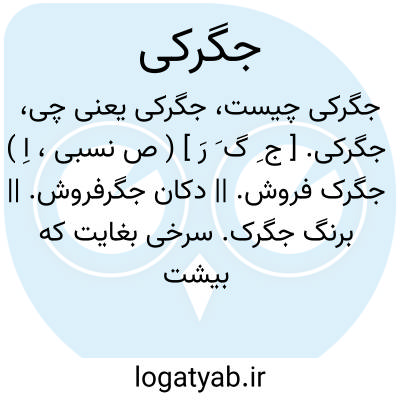 جگرکی. [ ج ِ گ َ رَ ] ( ص نسبی، اِ ) جگرک فروش. || دکان جگرفروش. || برنگ جگرک. سرخی بغایت که بیشتر بسیاهی زند. جگری.