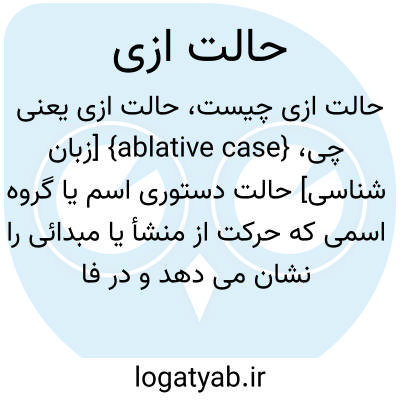 {ablative case} [زبان شناسی] حالت دستوری اسم یا گروه اسمی که حرکت از منشأ یا مبدائی را نشان می دهد و در فارسی با حرف اضافۀ «از» مشخص می شود متـ. ازی ablative
