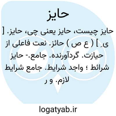(اسم ) ۱ - گرد آورنده فراهم آورنده جامع. ۲ - در بر دارنده دارا: (( این موضوع حایز اهمیت است. ) ) جمع: حایزین حایزین اکثریت.