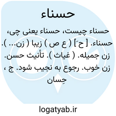 حسناء. [ ح َ] ( ع ص ) زیبا ( زن... ). زن جمیله. ( غیاث ). تأنیث حسن. زن خوب. رجوع به نجیب شود. ج، حِسان: