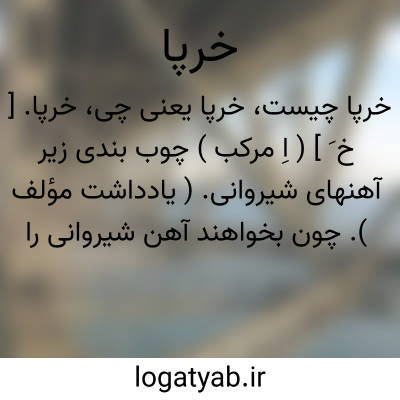 خرپا. [ خ َ ] ( اِ مرکب ) چوب بندی زیر آهنهای شیروانی. ( یادداشت مؤلف ). چون بخواهند آهن شیروانی را بکوبند ابتدا از چوبهای ضخیم مثلث هایی درست میکنند و قاعده آن مثلثها را روی سقف میگذارند و سپس روی اضلاع این مثلث ها دستکهای چوبی میکوبند و زمینه را برای آهن کوبی آماده میکنند. امروزه این کلمه بر مثلثهای ساخته شده از آهن برای منظورهایی شبیه بمنظور فوق نیز اطلاق میشود. خَرْفی ̍. خُلَّر. جُلَّبان. ( یادداشت به خط مؤلف ). || چوب بندی بشکل مثلث برای اره کشی و از وسط شکافتن تیر. ( یادداشت بخط مؤلف ). || چوب بندی برای آویزان کردن پرده نقاشی تا نقاش بتواند درکنار آن نشیند و نقاشی کند. ( یادداشت بخط مؤلف ).