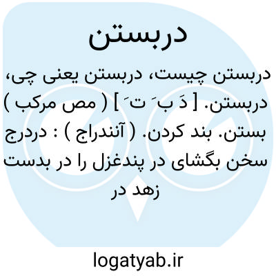 دربستن. [ دَ ب َ ت َ ] ( مص مرکب ) بستن. بند کردن. ( آنندراج ):