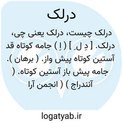 درلک. [ دِ ل ِ ] ( اِ ) جامه کوتاه قد آستین کوتاه پیش واز. ( برهان ). جامه پیش باز آستین کوتاه. ( آنندراج ) ( انجمن آرا ). درلیک. ترلک. ترلیک. لباچه. صدره. شاماکچه: