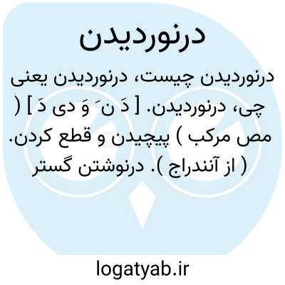 درنوردیدن. [ دَ ن َ وَ دی دَ ] ( مص مرکب ) پیچیدن و قطع کردن. ( از آنندراج ). درنوشتن گسترده ای را. لوله کردن. درپیچیدن. طی. طی کردن. ( یادداشت مرحوم دهخدا ). تا کردن. ورمالیدن. با هم پیچیدن و درنوردن کنانیدن. ( ناظم الاطباء ). جمع کردن.خلاف گستردن. برچیدن. ادراج. ( دهار ) ( تاج المصادر بیهقی ). تدریج. ( دهار ). لف. ( منتهی الارب ):