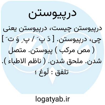 درپیوستن. [ دَ پ َ / پ ِ وَ ت َ ] ( مص مرکب ) پیوستن. متصل شدن. ملحق شدن. ( ناظم الاطباء ). تلفق: لَوغ؛ درپیوستن به کسی. ( از منتهی الارب ). || وصل کردن. || چسبیدن. || متحد کردن. ( ناظم الاطباء ). || ادامه دادن.