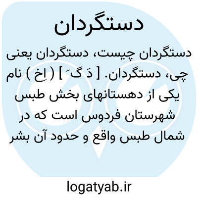 دستگردان. [ دَ گ َ ] ( اِخ ) دهی است از دهستان دستگردان بخش طبس شهرستان فردوس. واقع در 120هزارگزی شمال طبس، با 282 تن سکنه. آب آن از قنات و راه آن اتومبیل رو است. ( از فرهنگ جغرافیائی ایران ج 9 ).، دست گردان. [ دَ گ َ ] ( نف مرکب ) گرداننده و به دور درآورنده با دست. چرخاننده به دست. || ( ن مف مرکب ) با دست به دور وچرخش درآمده. گردانیده شده از دستی به دستی. || دستگردو. وام کردن. ( تداول گناباد خراسان ). || ( اِ مرکب ) وام. قرض. چیزی که به عاریت گیرند. ( آنندراج ):
