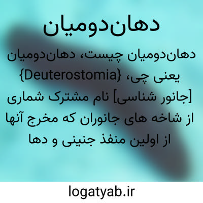 {Deuterostomia} [جانور شناسی] نام مشترک شماری از شاخه های جانوران که مخرج آنها از اولین منفذ جنینی و دهانشان از دومین منفذ جنینی به وجود می آید