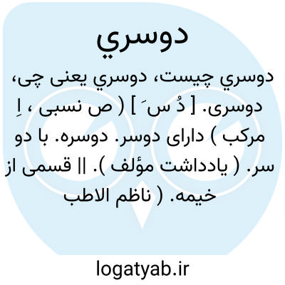 دوسری. [ دُ س َ ] ( ص نسبی، اِ مرکب ) دارای دوسر. دوسره. با دو سر. ( یادداشت مؤلف ). || قسمی از خیمه. ( ناظم الاطباء ) ( از آنندراج ):