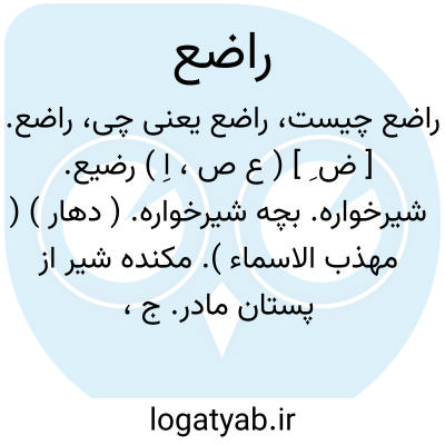 راضع. [ ض ِ ] ( ع ص، اِ ) رضیع. شیرخواره. بچه شیرخواره. ( دهار ) ( مهذب الاسماء ). مکنده شیر از پستان مادر. ج، رُضَّع. ( اقرب الموارد ). || مرد بخیل ناکس. ( منتهی الارب ). ج، رضع و رُضّاع. ( منتهی الارب ). سخت بخیل. ( مهذب الاسماء ). لئیم. ج، رضع. ورضاع. ( اقرب الموارد ). لئیم و خسیس. ( از المنجد ). اصل آن این است که مردی بوده که شتر و گوسفند داشته وبرای اینکه صدای دوشیدن آنها شنیده نشود آنها را نمی دوشیده بلکه می مکیده است. ( منتهی الارب ) ( ناظم الاطباء ). شبانی که از بخل با خود شیردوشه ندارد و هرگاه از وی احدی شیر طلبد عذر عدم شیردوشه پیش آرد. ( منتهی الارب ) ( آنندراج ) ( اقرب الموارد ) ( ناظم الاطباء ). || سائل ستیهنده. و فی المثل لئیم راضع، در حق کسی گویند که در بخل بغایت رسیده باشد. ( منتهی الارب ) ( ناظم الاطباء ) ( آنندراج ). سائل و گدا. ( از اقرب الموارد ) ( از المنجد ). || آنکه خلاله دندان خود را بخورد تا از طعام چیزی فوت نشود. ( منتهی الارب ) ( آنندراج ) ( ناظم الاطباء ). || دندان شیر. دندان شیری. دندانهای نخستین کودک. ج، رواضع. ( یادداشت مؤلف ). دندان شیرخواره. ج، رَواضِع. ( دهار ).