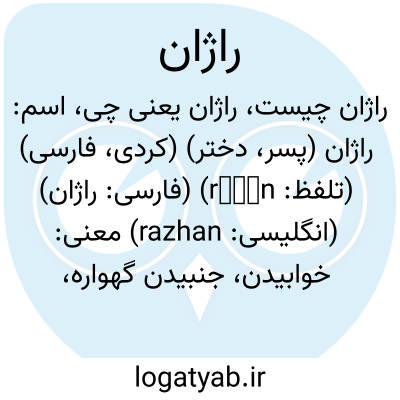 اسم: راژان (پسر، دختر) (کردی، فارسی) (تلفظ: rāžān) (فارسی: راژان) (انگلیسی: razhan)