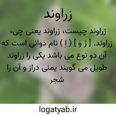 ( اسم ) گیاهی از رده دو لپه ییهای بی گلبرگ که تیره خاصی بنام تیره زراوندها را میسازد این تیره جزو تیره های نزدیک باسفنجیان است. گلهایش ارغوانی یا صورتی و برگهایش بی دندانه و ریز و ریشه اش کلفت و میوه اش کروی است ارسطولوخیا زهر زمین. یا زراوند طویل گونه ای زرواوند که برگهایش از دیگر انواع طویلتر است زواند دراز.