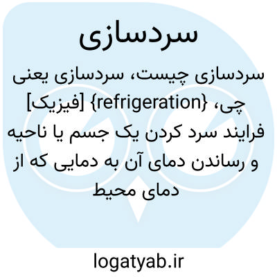 {refrigeration} [فیزیک] فرایند سرد کردن یک جسم یا ناحیه و رساندن دمای آن به دمایی که از دمای محیط اطراف به طور قابل ملاحظه ای پایین تر است