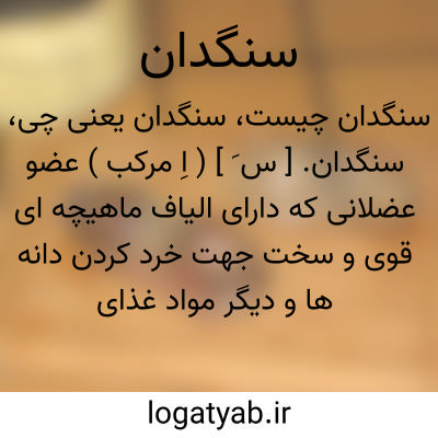 سنگدان. [ س َ ] ( اِ مرکب ) عضو عضلانی که دارای الیاف ماهیچه ای قوی و سخت جهت خرد کردن دانه ها و دیگر مواد غذایی پرندگان در مسیر مری پس از چینه دان و قبل از معده اصلی قرار دارد. وجه تسمیه این عضو بدان جهت است که پرندگان دانه خوار جهت خرد کردن دانه ها که معمولاً سفت و سخت هستند یکی دو عدد شن می بلعند و این شن ها در داخل این عضو جهت آسیا کردن دانه ها باقی میماند. سنگک. ( فرهنگ فارسی معین ). اسم فارسی قافضه است. ( تحفه حکیم مؤمن ). حوصله. معده سوم طیور و چینه دان طیور. ( ناظم الاطباء ).