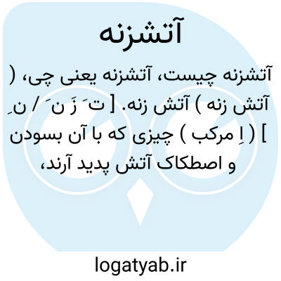 ( آتش زنه ) آتش زنه. [ ت َ زَ ن َ / ن ِ ] ( اِ مرکب ) چیزی که با آن بسودن و اصطکاک آتش پدید آرند، خواه از دو چوب باشد که زبرین را زند و زیرین را زنده گویند، و خواه از آهن و سنگ بود که آن را سنگ و چخماق خوانند. زند و زنده. قداحه. مقدحه. چخماق: