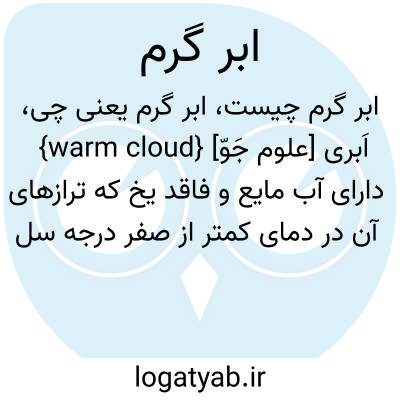 {warm cloud} [علوم جَوّ] اَبری دارای آب مایع و فاقد یخ که ترازهای آن در دمای کمتر از صفر درجه سلسیوس نیست