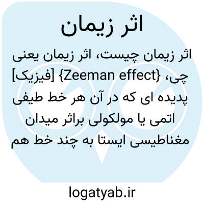 {Zeeman effect} [فیزیک] پدیده ای که در آن هر خط طیفی اتمی یا مولکولی براثر میدان مغناطیسی ایستا به چند خط هم فاصله تجزیه می شود