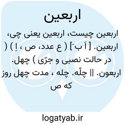 (اَ بَ ) [ ع. ] (اِ. ) ۱ - چهل، چهلم. ۲ - چله، چهل روزی که صوفیان در گوشه ای نشسته به ریاضت و عبادت پردازند. ۳ - چهلمین روز درگذشت شخص. ۴ - چهل روز بعد از روز عاشورا، بیستم ماه صفر.