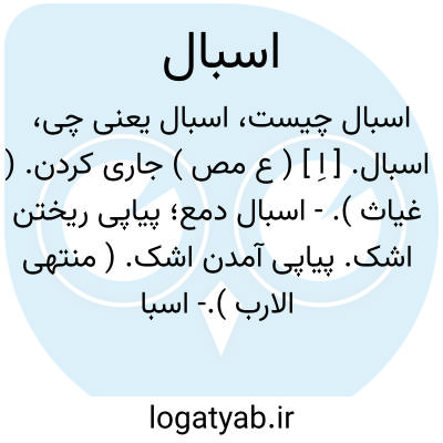 اسبال. [ اِ ] ( ع مص ) جاری کردن. ( غیاث ). - اسبال دمع؛ پیاپی ریختن اشک. پیاپی آمدن اشک. ( منتهی الارب ).