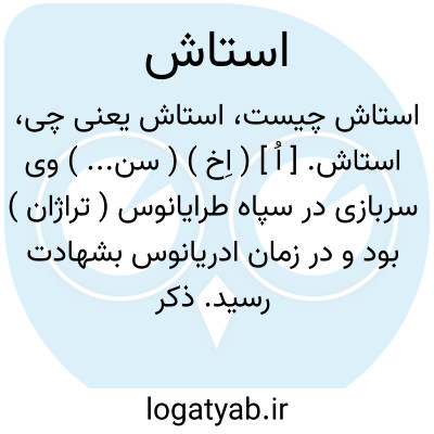 استاش. [ اُ ] ( اِخ ) ( سن... ) وی سربازی در سپاه طرایانوس ( تراژان ) بود و در زمان ادریانوس بشهادت رسید. ذکران او 20 سپتامبر است.