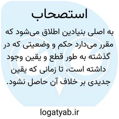 ۱. (فقه ) حکم دادن به باقی بودن حالت سابق، هنگام شک داشتن در یک حُکم، مثلاً درصورت غیبت طولانی مدت کسی حکم به زنده بودن او می دهند.