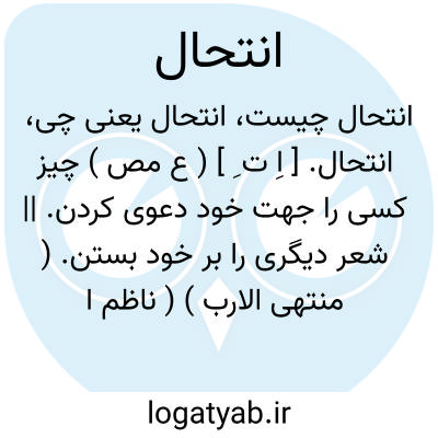۱ - ( مصدر ) بخود بستن بخویش در بستن بخود نسبت دادن. ۲ - ( اسم ) سخن دیگری بر خویشتن بستن و آن چنان باشد که کسی شعر دیگری را مکابره بگیرد و شعر خویش سازد بی تغییری و تصرفی در لفظ و معنی آن یا بتصرفی اندک. جمع: انتحالات.