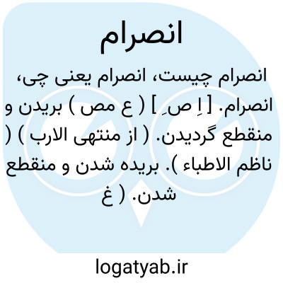 انصرام. [ اِ ص ِ ] ( ع مص ) بریدن و منقطع گردیدن. ( از منتهی الارب ) ( ناظم الاطباء ). بریده شدن و منقطع شدن. ( غیاث اللغات ) ( آنندراج ). انقطاع. ( تاج المصادر بیهقی ) ( مصادر زوزنی ) ( از اقرب الموارد ). پاره پاره شدن. ( یادداشت مؤلف ). || آخر شدن. ( غیاث اللغات ) ( آنندراج ). گذشتن. ( از اقرب الموارد ). سر آمدن. برسیدن. بپایان رسیدن. بسر رسیدن مدت. بسر رسیدن. بررسیدن. انقضاء. ( یادداشت مؤلف ). || ( اِمص ) بریدگی. ( فرهنگ فارسی معین ).