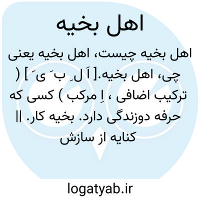 اهل بخیه.[ اَ ل ِ ب َ ی َ ] ( ترکیب اضافی، اِ مرکب ) کسی که حرفه دوزندگی دارد. بخیه کار. || کنایه از سازشکار. ( یادداشت بخط مرحوم دهخدا ). || رندخراباتی. هم مشرب. رازدار. ( آنندراج ): پادشاهی امر کرد که خیمه ای بسرعت مهیا سازند عمله فراش خانه خیمه دوزان بسیاری فراهم آوردند، پالان دوزی هم در آن مجمع حاضر شد. پرسیدندش کیستی، گفت من از اهل بخیه ام یعنی از شماام. ( آنندراج ). || رند: