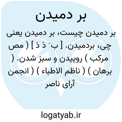بردمیدن. [ ب َ دَ دَ ] ( مص مرکب ) روییدن و سبز شدن. ( برهان ) ( ناظم الاطباء ) ( انجمن آرای ناصری ) ( آنندراج ). سر زدن از خاک: