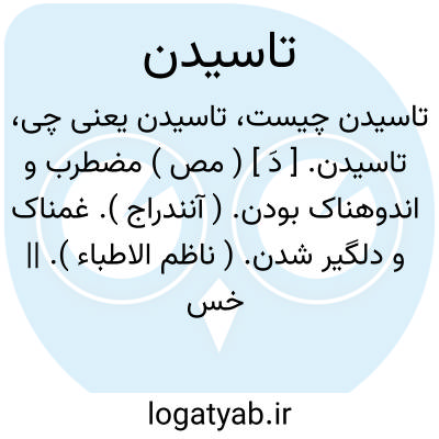 تاسیدن. [ دَ ] ( مص ) مضطرب و اندوهناک بودن. ( آنندراج ). غمناک و دلگیر شدن. ( ناظم الاطباء ). || خستگی و کوفتگی:...یکی به مردن روح حیوانی و دیگری به تاسیدن روح حیوانی. ( کیمیای سعادت ). || پی در پی نفس زدن مردم و اسب و جانور دیگر از کثرت گرما. ( حاشیه برهان چ معین ): روز سخت گرم شد و ریگ بتفت و لشکر و ستوران از تشنگی بتاسیدند. ( تاریخ بیهقی چ ادیب ص 493 و چ فیاض ص 485 ). || بمعنی تاسه که فشردن گلو باشد. ( لغت محلی شوشتر نسخه خطی کتابخانه لغت نامه دهخدا ). بهمه معانی رجوع به تاس و تاسا و تاسانیدن وسایر ترکیبات تاس و تاسه و تلواسه و تالواسه شود.