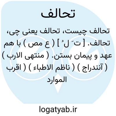تحالف. [ ت َ ل ُ ] ( ع مص ) با هم عهد و پیمان بستن. ( منتهی الارب ) ( آنندراج ) ( ناظم الاطباء ) ( اقرب الموارد ) ( قطر المحیط ). || بهم [ با هم ] سوگند خوردن. ( زوزنی ). سوگند خوردن با یکدیگر. ( منتهی الارب ) ( از آنندراج ) ( ناظم الاطباء ).