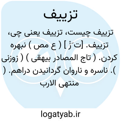 تزییف. [ت َزْ ] ( ع مص ) نبهره کردن. ( تاج المصادر بیهقی ) ( زوزنی ). ناسره و ناروان گردانیدن دراهم. ( منتهی الارب ) ( آنندراج ) ( ناظم الاطباء ). ناسره کردن درم. ( از متن اللغة ) ( از اقرب الموارد ) ( از المنجد ): و چون پدرش از این شیوه عاری بود پسر بدین تلبیسات و تزییفات در جنب او عالمی متفوق می نمود. ( جهانگشای جوینی ). || تحقیر و تصغیر کسی. ( از متن اللغة ) ( از اقرب الموارد ) ( از المنجد ). || بلند و مرتفع ساختن بناء. ( از اقرب الموارد ) ( از المنجد ).
