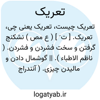 تعریک. [ ت َ ] ( ع مص ) نشکنج گرفتن و سخت فشردن و فشردن. ( ناظم الاطباء ). || گوشمال دادن و مالیدن چیزی. ( آنندراج ): و از برای تقدیم و تعریک مفسدان و قمع و تأدیب متعدیان و زجر و تشدید جاهلان عقل و اجتهاد داد. ( سندبادنامه ص 3 ). تأدیب این تعدی و بی حرمتی و تعریک این خیانت و بی خویشتنی که کرد به حد اعتبار رساند. ( سندبادنامه ص 77 ). پشت و پهلوی زن درهم شکست و تعریک و تأدیبی بلیغ بجای آورد. ( سندبادنامه ص 240 ). او را بینداخت و به تازیانه تأدیب و تعریک و مالش دادند. ( ترجمه ٔتاریخ یمینی چ اول تهران ص 346 ). تأدیب و تعریک او جز به شمشیر قاطع و سنان ساطع نبودی. ( ترجمه تاریخ یمینی ایضاً ص 369 ). نصر به تأدیب و تعریک همه قیام نمود. ( ترجمه تاریخ یمینی ایضاً ص 387 ). تنبیه و تعریک هر قومی را فراخور طغیان و نسبت کفران، تأدیبی تقدیم می رفته. ( جهانگشای جوینی ). تعریک و تأدیب آن جماعت فراخور جریمت بتقدیم رسد. ( جهانگشای جوینی ).