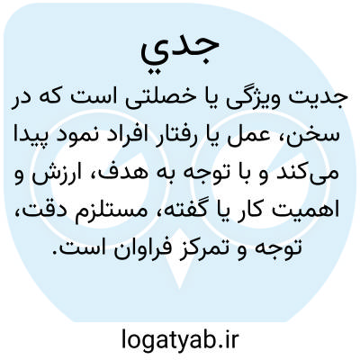 ( صفت ) ۱- منسب به حد: ( ( مردم جدی مثل من صاف و پوست کنده حرف میزنند. ) ) ( حجازی ) یا کار جدی. کار مهم که با سعی و کوشش دنبال گردد. ۲- از روی حقیقت و راستی جدا مقابل شوخی:( ( جدی میگویی ? ) )