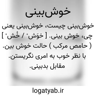 ۱ - بنظر نیک در جهان وجهانیان نگریستن مقابل بدبینی. ۲ - اعتقاد باین که جهان پر از لطف و صفا و سعادت است مقابل بد بینی.