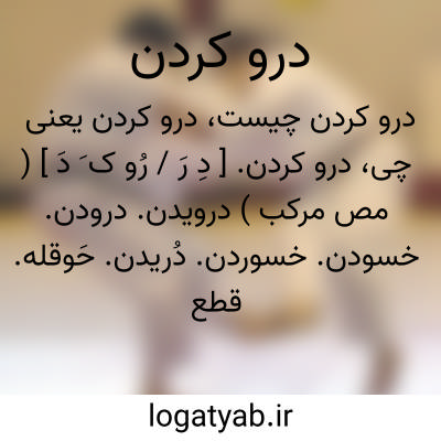 درو کردن. [ دِ رَ / رُو ک َ دَ ] ( مص مرکب ) درویدن. درودن. خسودن. خسوردن. دُریدن. حَوقله. قطع کردن گندم و جو و امثال آن بوسیله داس یا ابزاری دیگر: