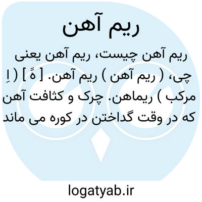 ( ریم آهن ) ( اسم ) آنچه که از آهن پس از ذوب در کوره باقی ماند یا بهنگام پتک زدن از آن فرو ریزد.