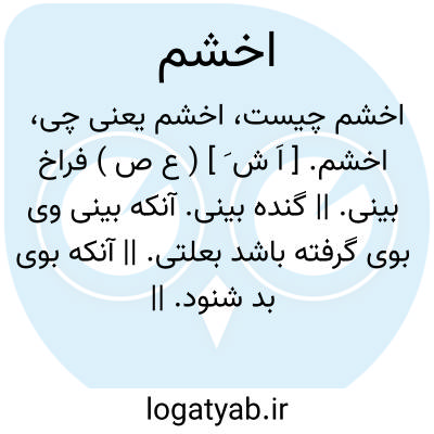 اخشم. [ اَ ش َ ] ( ع ص ) فراخ بینی. || گنده بینی. آنکه بینی وی بوی گرفته باشد بعلتی. || آنکه بوی بد شنود. || آنکه قوه شامه ندارد. آنکه بوی و گند نشنود. ( تاج المصادر ). آنکه بوی نکشد از پیری. آنکه بوی نشنود. ( مهذب الاسماء ). آنکه بوی درنیابد. آنکه حاسه بویائی ندارد. آنکه بینی او بوی نداند. کسی که ادراک بوی خوش و بوی بد نکند. ( غیاث از لطائف ). مؤنث: خَشْماء: