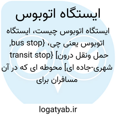 {bus stop, transit stop} [حمل ونقل درون شهری-جاده ای] محوطه ای که در آن مسافران برای سوار شدن به وسیلۀ نقلیه و پیاده شدن از آن انتظار می کشند و معمولاً علائمی برای مشخص کردن محل ایستگاه در آنجا نصب می شود
