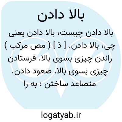 بالا دادن. [ دَ ] ( مص مرکب ) راندن چیزی بسوی بالا. فرستادن چیزی بسوی بالا. صعود دادن. متصاعد ساختن: