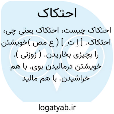 احتکاک. [ اِ ت ِ ] ( ع مص )خویشتن را بچیزی بخاریدن. ( زوزنی ). خویشتن درمالیدن بوی. با هم خراشیدن. با هم مالیدن. ( غیاث ). || محتاج خاریدن شدن. || با کسی واکوشیدن. ( زوزنی ). با کسی کوشیدن. ( تاج المصادر ). کاویدن با کسی. || احتکاک در صدر؛ خلیدن در دل.