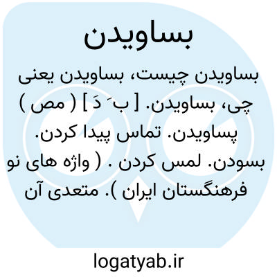بساویدن. [ ب َ دَ ] ( مص ) پساویدن. تماس پیدا کردن. بسودن. لمس کردن. ( واژه های نو فرهنگستان ایران ). متعدی آن بسایانیدن. امساس. ( منتهی الارب ): بروغن و آب که اندر جام کنی یک با دیگر نیامیزد و لکن ببساوند بر سطح میان ایشان. ( التفهیم ).